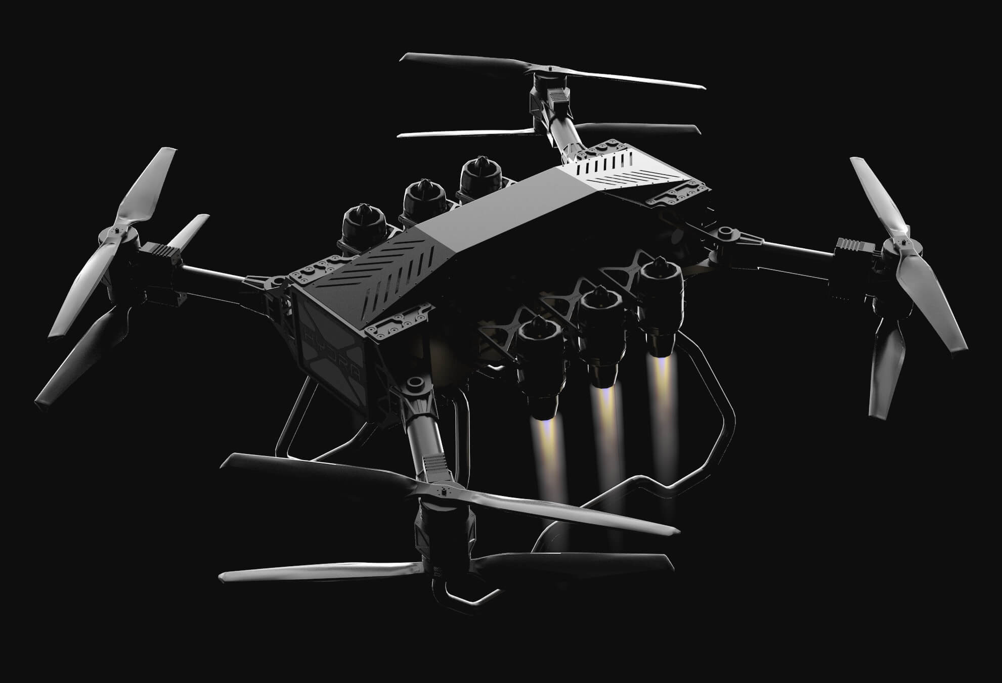 پهپاد HYDRA-400 به دلیل قابلیت حمل بار سنگین، طراحی جمع و جوری دارد که آن را به یکی از گزینههای مناسب برای حمل و نقل بارهای بزرگ تبدیل کرده است. این پهپاد به راحتی میتواند در پشت یک کامیون تخت قرار گیرد و تنها در عرض چند دقیقه برای پرواز آماده شود. علاوه بر این، امکان پیکربندی آن به صورت کاملاً برقی یا هیبریدی با دو، چهار یا شش جت نیز وجود دارد.