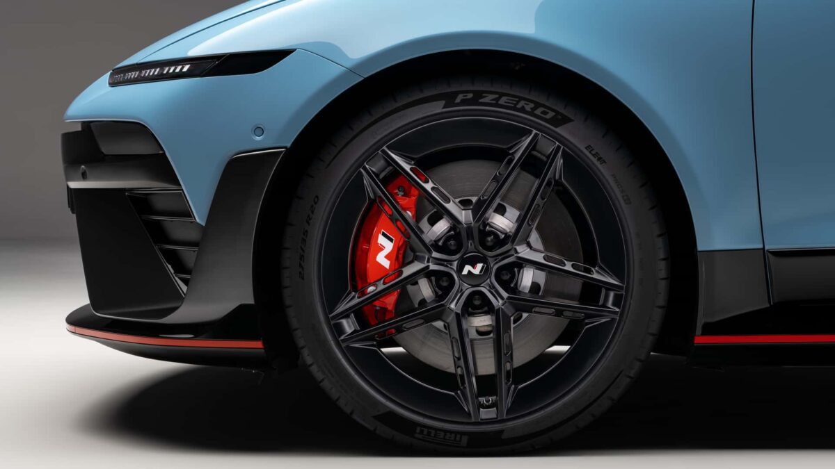 در بخش ترمزگیری، آیونیک ۶ N به دیسکهای جلوی ۱۵.۷ اینچی با کالیپرهای چهار پیستونه و دیسکهای عقب ۱۴.۱ اینچی با کالیپر تک پیستونه مجهز است. تایرهای Pirelli P-Zero 5 در اندازه 275/35R20 که به طور ویژه برای این خودرو توسعه یافتهاند، عملکرد مناسب در سرعتهای بالا را تضمین میکنند.