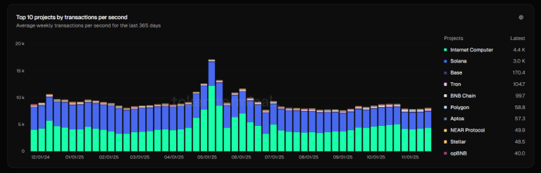 همچنین استلار در میان ۱۰ پروژه برتر از نظر تعداد تراکنش بر ثانیه نیز دیده می‌شود و طی سال گذشته میانگین ۴۸.۵ تراکنش بر ثانیه را به ثبت رسانده است. این داده‌ها نشان می‌دهد استفاده آنی از شبکه همچنان قوی است و تقاضای معناداری برای آن وجود دارد.