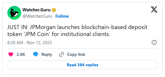 بانک جیپی مورگان رسماً از توکن بلاکچینی خود با نام «جیپیام کوین» (JPM Coin) رونمایی کرد؛ توکنی که برای مشتریان نهادی طراحی شده و گامی مهم در مسیر تحول دیجیتال این بانک به شمار میرود.