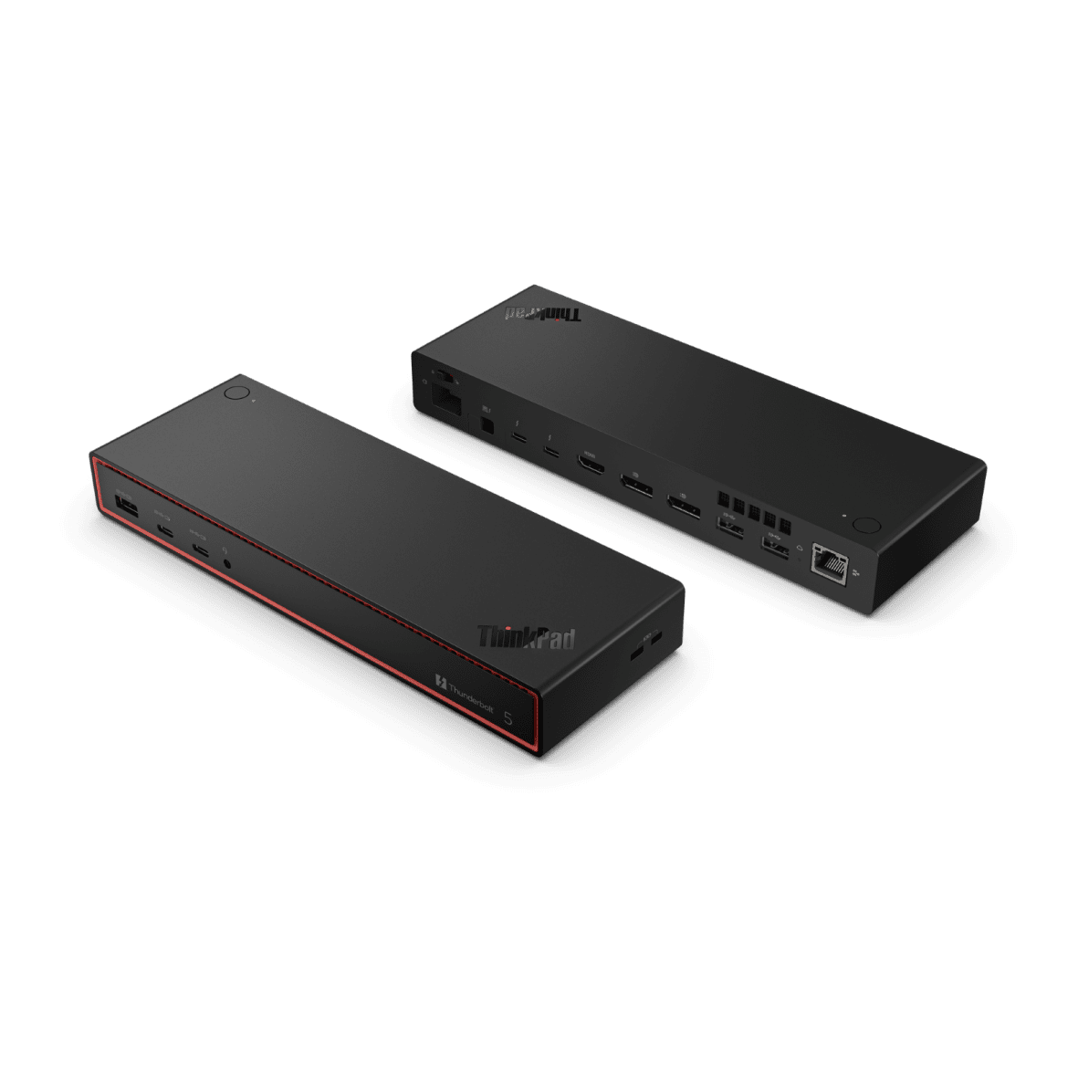 سومین محصول معرفی‌شده ThinkPad USB4 Smart Dock 5500 است که گزینه‌ای مقرون‌به‌صرفه برای کاربرانی با نیازهای ساده‌تر محسوب می‌شود. این داک به یک درگاه USB 4.0، دو پورت USB 3.2 Type-C (یکی در جلو و یکی در پشت)، دو پورت USB 3.2 Type-A و یک درگاه اترنت ۱ گیگابیتی مجهز شده است. پورت‌های DP ۱/۴ و HDMI 2.1 بدون تغییر باقی مانده‌اند و توان خروجی USB-PD در این مدل تا ۱۰۰ وات پشتیبانی می‌شود.