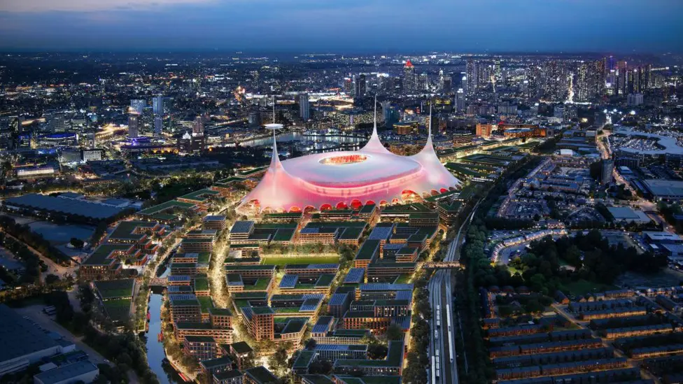 طراحی این ورزشگاه جدید را شرکت Foster and Partners بر عهده دارد؛ مجموعهای که پیشتر طراحی استادیوم ومبلی و ورزشگاه لوسیل – محل برگزاری فینال جام جهانی ۲۰۲۲ – را انجام داده است. این ورزشگاه دارای یک طراحی چتری خواهد بود و میدان عمومی اطراف آن دو برابر میدان ترافالگار وسعت خواهد داشت. همچنین، سه دکل بزرگ موسوم به “سهشاخه” با ارتفاع ۲۰۰ متر در این مجموعه تعبیه خواهد شد که تا فاصله ۲۵ مایلی قابل مشاهده خواهد بود.