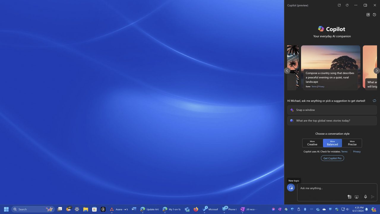 Copilot اکنون به عنوان یک برنامه محلی در ویندوز عمل میکند که میتوانید از آن سؤال بپرسید، تنظیمات را تغییر دهید و موارد دیگری نیز وجود دارد. لپ تاپهای Copilot+، مانند این لپ تاپ Surface، حتی دارای یک کلید Copilot اختصاصی برای راهاندازی دستیار هستند. Copilot به تنهایی یک موضوع کامل است، بنابراین در اینجا بیشتر به خود سرویس نمیپردازیم. در مقابل به توضیح Copilot و برخی دستورالعملها و ایدهها برای امتحان کردن گزینهها مراجعه کنید.