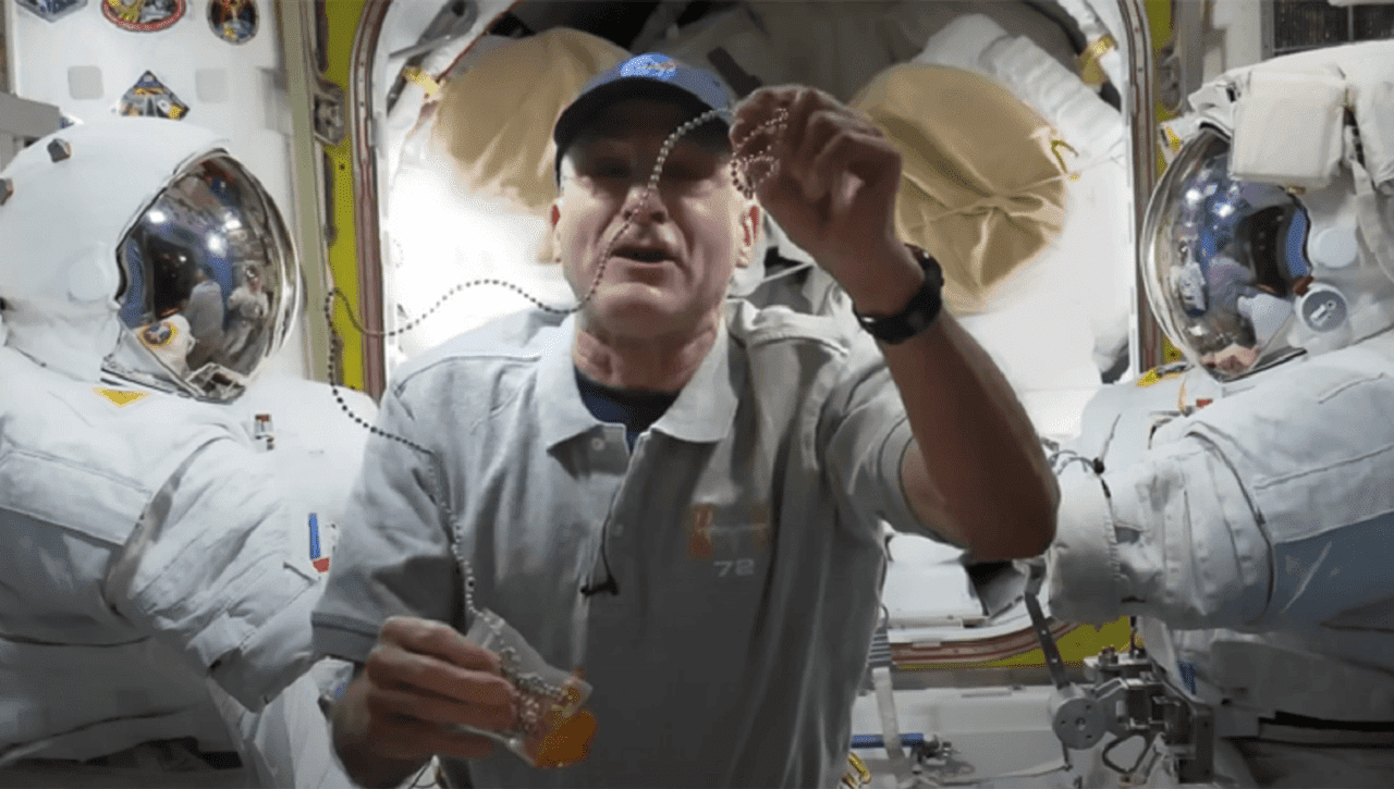 اما برای آزمایش این ایده، لازم بود گرانش حذف شود. اینجا است که فضانورد ناسا وارد ماجرا شد. پتیت که از ویدیوهای مولد شگفتزده شده بود، پیشنهاد داد تا رفتار زنجیرها را در ایستگاه فضایی بینالمللی (ISS) بررسی کنند.