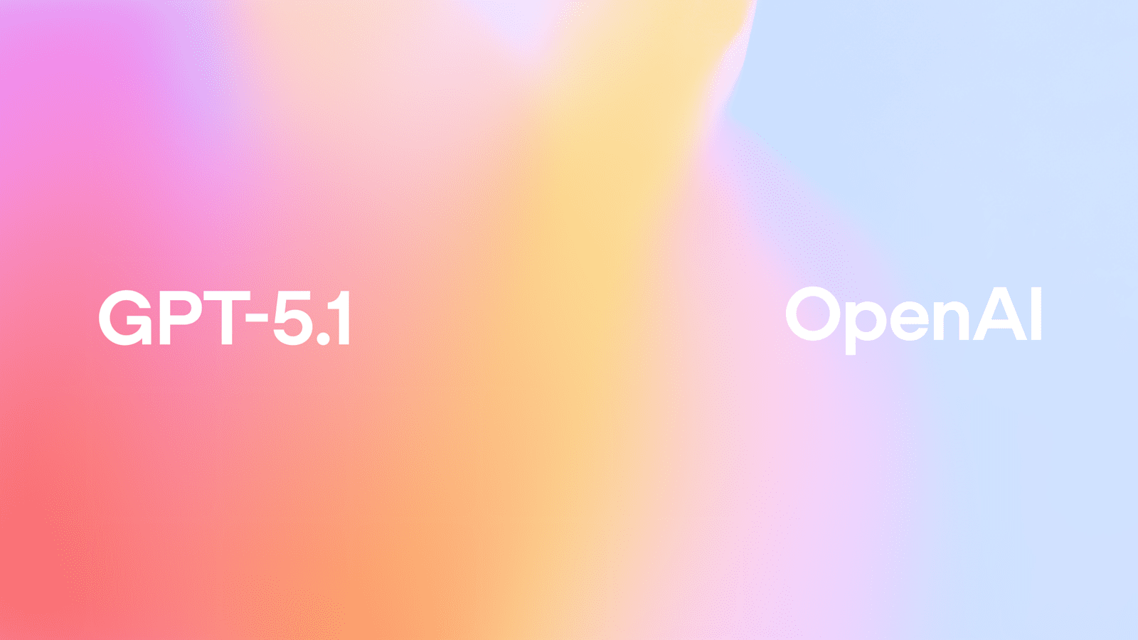 پس‌زمینه انتزاعی با گرادیانت محو و رنگارنگ (صورتی، نارنجی، آبی روشن) با متن سفید "GPT-5.1" در سمت چپ و "OpenAI" در سمت راست.