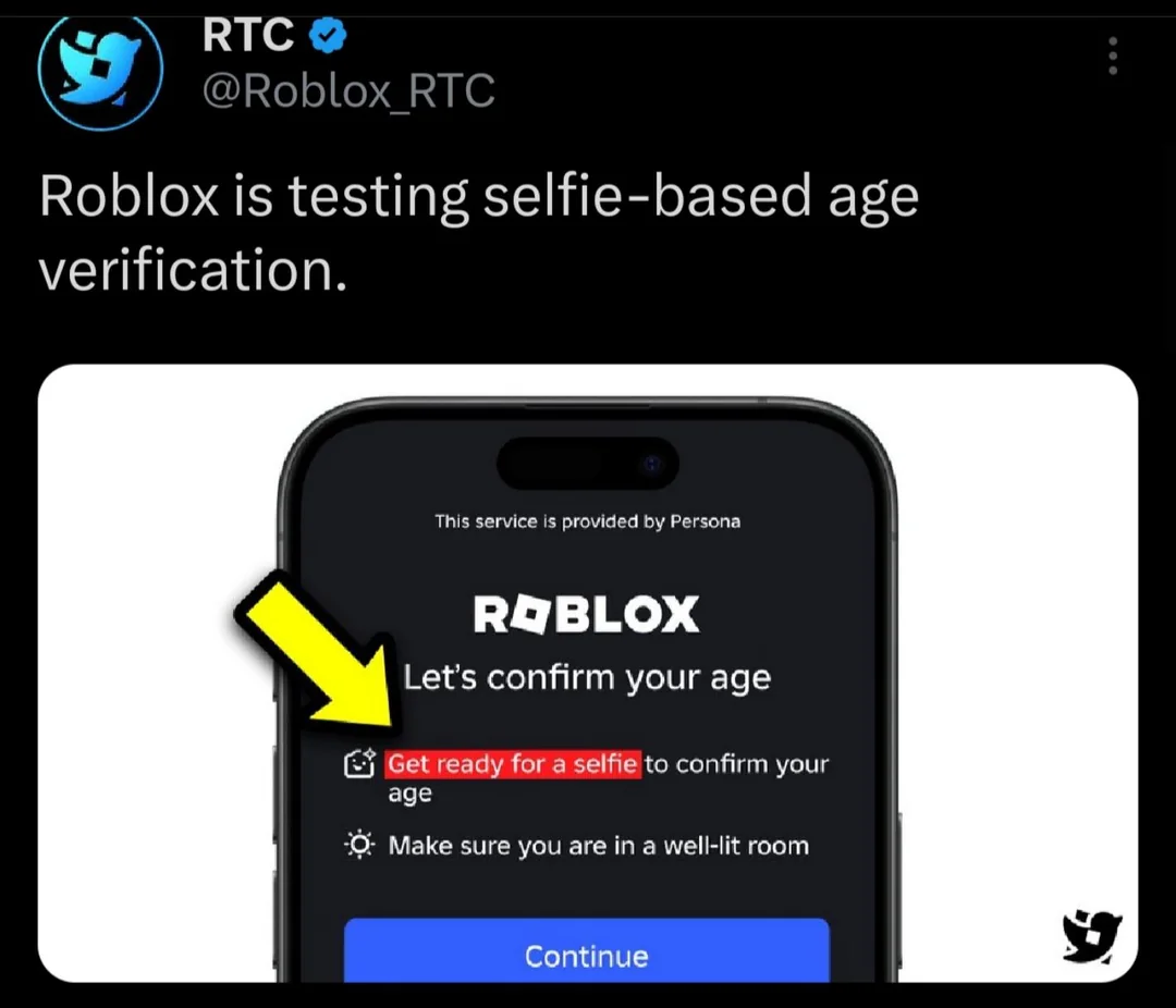 برخلاف اکثر برنامههای رسانههای اجتماعی که حداقل سن ۱۳ سال را برای کاربران خود تعیین کردهاند، روبلاکس به کودکان بسیار کوچکتر نیز اجازه استفاده از پلتفرم خود را میدهد. با توجه به اینکه اکثر کودکان و بسیاری از نوجوانان کارت شناسایی ندارند، این شرکت از فناوری “تخمین سن” ارائه شده توسط شرکت هویتی Persona استفاده میکند. این بررسیها که از سلفیهای ویدیویی استفاده میکنند، مستقیماً در برنامه Roblox انجام میشوند و شرکت اعلام کرده است که تصاویر چهره کاربران بلافاصله پس از اتمام فرآیند، حذف میشوند.