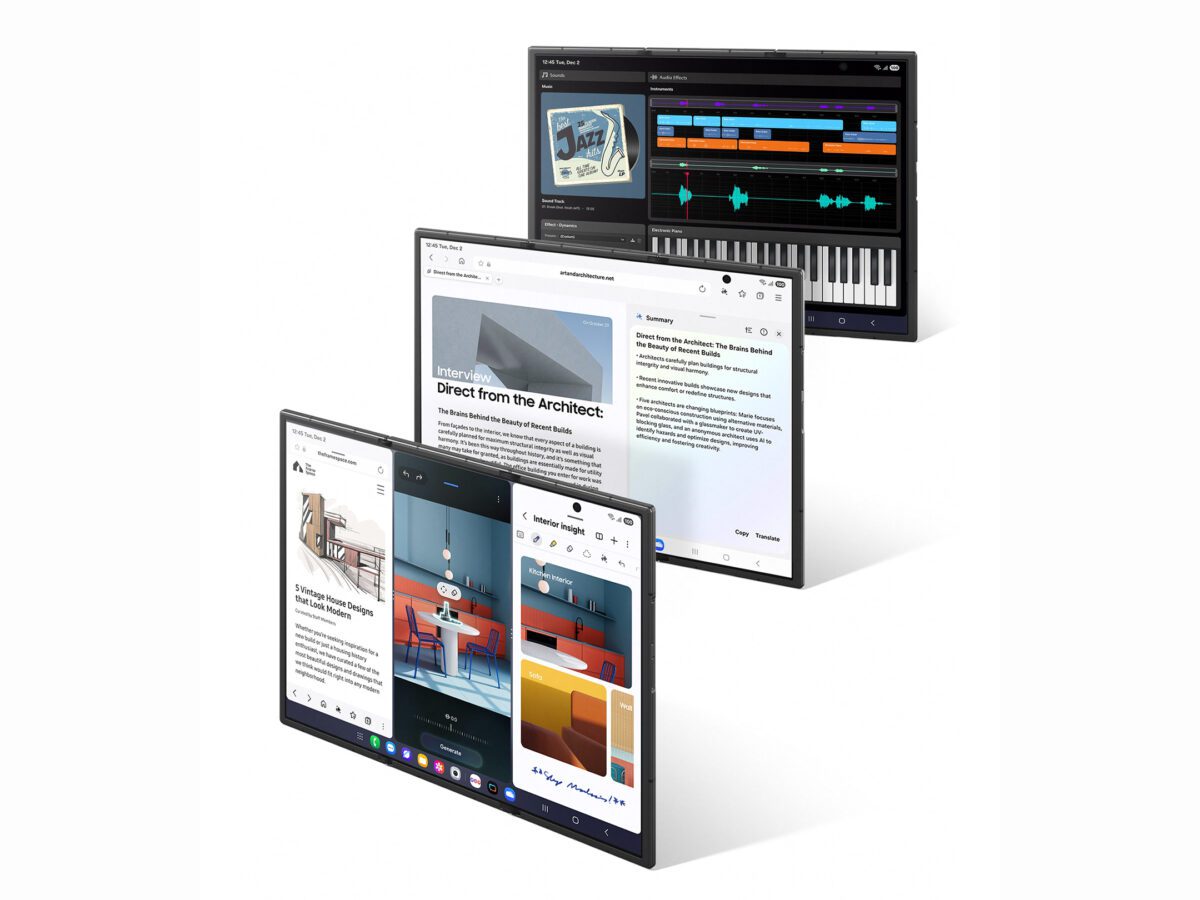 نمایشگر داخلی Z TriFold ده اینچ اندازه دارد و رزولوشن 1584×2160 را ارائه میدهد و نرخ نوسازی آن از 120 هرتز تا 1 هرتز متغیر است. این نمایشگر امکان اجرای همزمان سه برنامه را فراهم میکند و حتی محیط DeX را بدون نیاز به نمایشگر خارجی فعال میکند. نمایشگر بیرونی دستگاه ۶.۵ اینچ است و با نسبت ابعاد 21:9 و رزولوشن 1080p عملکردی مشابه Z Fold 7 دارد.