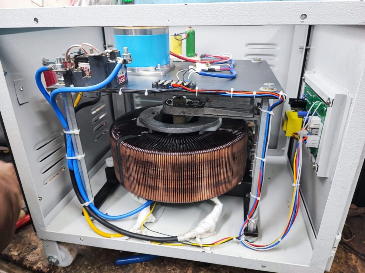 استابلایزر سرووموتوری یک گزینه حرفهایتر برای تثبیت ولتاژ است که از موتور سروو و ترانسفورماتور واریابل استفاده میکند تا ولتاژ را بهطور پیوسته تنظیم کند. این مدل دقت بالایی در محدوده ±۱ تا ±۳ درصد دارد و حتی در نوسانات شدید، خروجی پایدار ارائه میدهد. به دلیل مکانیزم مکانیکی، سرعت واکنش آن نسبت به مدلهای استاتیک کمتر است، اما برای بارهای حساس مانند تجهیزات پزشکی، دستگاههای CNC و آزمایشگاهی بسیار مناسب است. طول عمر بالا و قدرت کارکرد مداوم از مزایای اصلی آن است، هرچند به دلیل قطعات متحرک، نیاز به نگهداری دورهای دارد. این مدل نمونهای بارز از تفاوت استابلایزر با محافظ ولتاژ را نشان میدهد، زیرا علاوه بر قطع خطرات، توانایی اصلاح پیوسته ولتاژ را هم دارد.
