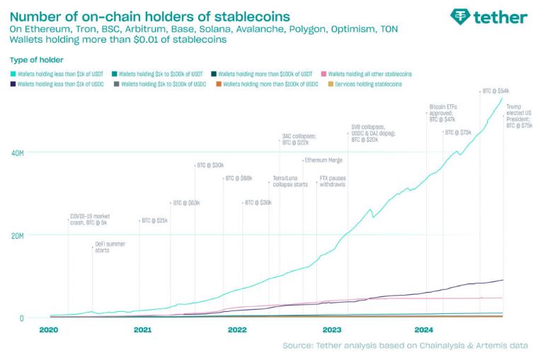 بر اساس اعلام تتر، تعداد زیاد کیف پولهای کوچک نشاندهنده اعتبار و کارایی این استیبلکوین است: