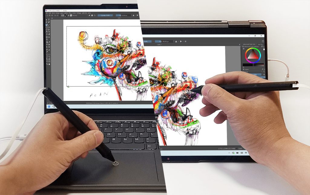در این دسته، تبلتها دارای نمایشگر داخلی هستند و کاربر مستقیماً روی خود صفحه طراحی میکند. مدلهایی مانند XP-Pen Artist یا Huion Kamvas نمونههای معروف این گروهاند. این ابزارها برای هنرمندان حرفهای و افرادی که نیاز به دقت و سرعت بالا دارند، ایدهآلاند. تجربه طراحی در این مدلها بسیار شبیه به نقاشی روی کاغذ است و نیاز به هماهنگی چشمی را از بین میبرد. البته قیمت بالاتر و نیاز به فضای بیشتر از جمله نکات قابل توجه در انتخاب این دستگاههاست.