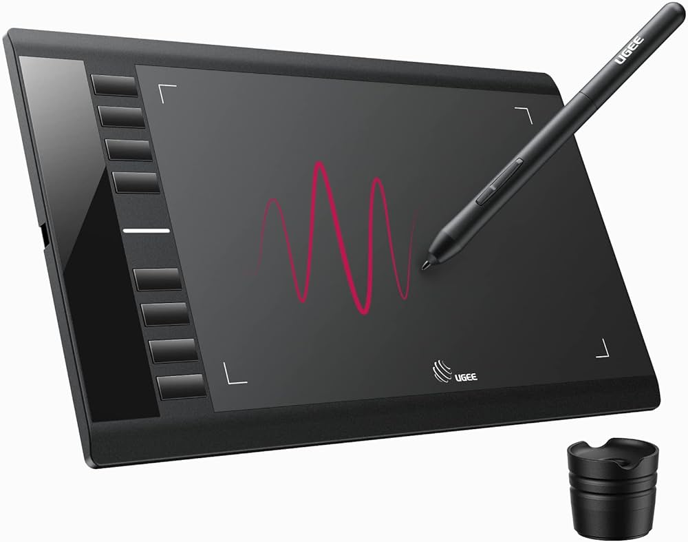 UGEE یکی از برندهای رو به رشد در بازار قلم نوری ایران است که مدلهایی مانند EX08 و H960 را با قیمت اقتصادی و عملکرد قابل قبول عرضه کرده است. EX08 با صفحهی فعال بزرگ، کلیدهای میانبر، طراحی ارگونومیک و حساسیت بالای فشار، یک انتخاب مقرونبهصرفه برای طراحان نیمهحرفهای است. این مدل همچنین به دلیل پشتیبانی از سیستمعاملهای مختلف برای کلاسهای مجازی و تدریس آنلاین نیز کاربرد دارد.