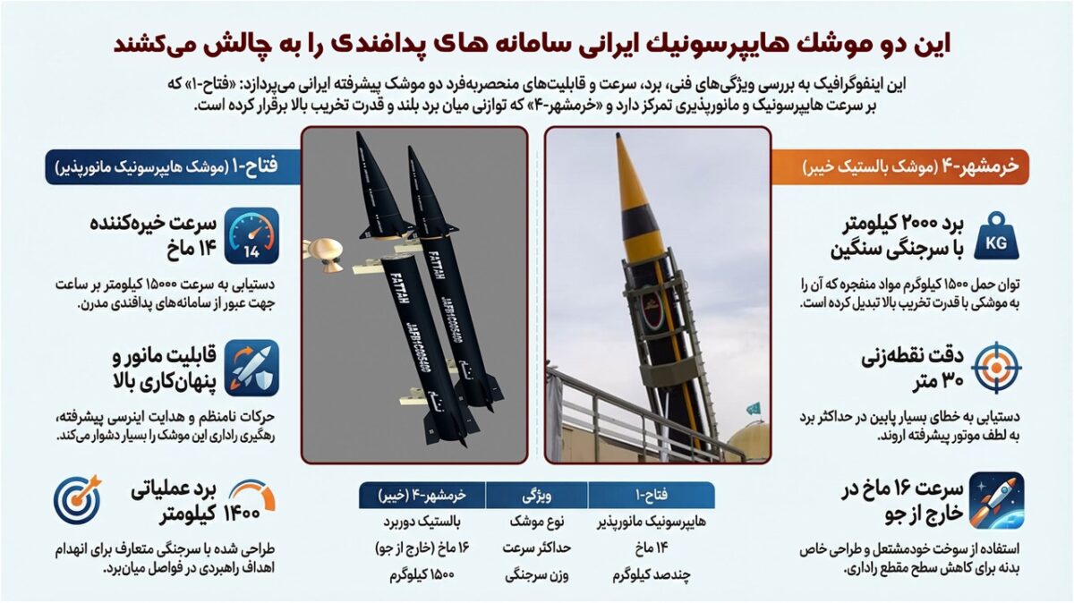 این دو موشک ایرانی سامانه های پدافندی را به چالش می کشند + اینفوگرافیک