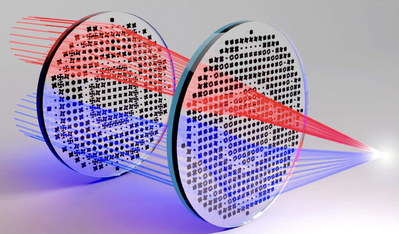 الگوریتم به اشکال شگفتانگیزی مانند مربعهای گرد، شبدرهای چهارپر و پروانهای دست یافت. این اجزای کوچک که حدود ۳۰۰ نانومتر ارتفاع و ۱۰۰۰ نانومتر عرض داشتند، کل بازه تغییر فاز از صفر تا ۲π را پوشش میدادند. این قابلیت، طراحی نقشههای گرادیان فاز برای الگوهای کانونی دلخواه را ممکن کرد. با وجود این پیشرفتها، لنزهای چندلایه تنها قادر به تمرکز همزمان در حداکثر پنج طولموج هستند. دلیل این محدودیت آن است که ساختار باید بهاندازه کافی بزرگ باشد تا در طولانیترین طولموجها رزونانس ایجاد کند، بدون آنکه پراش در طولموجهای کوتاهتر رخ دهد.