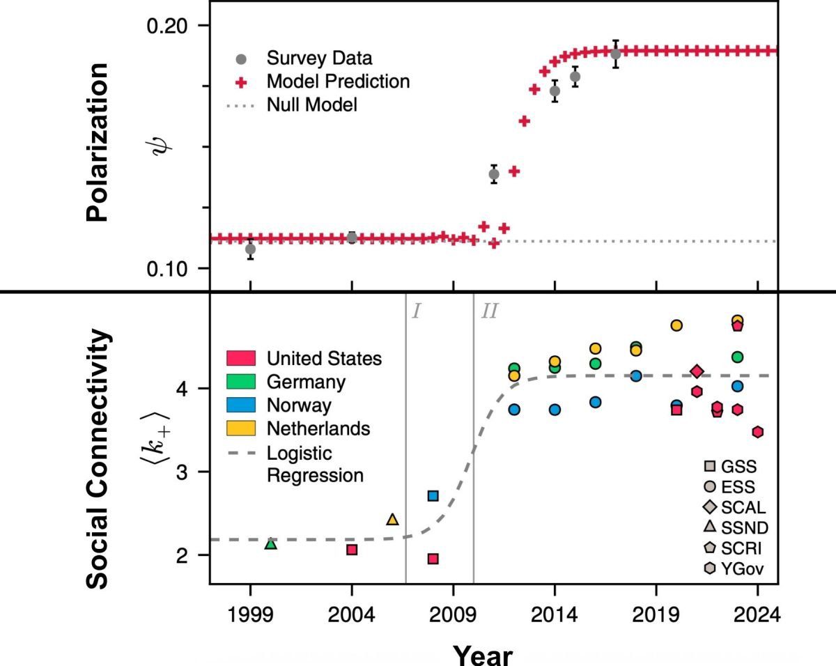 رشد ناگهانی قطبی شدن و افزایش تعداد دوستان نزدیک بین سال‌های ۲۰۰۸ تا ۲۰۱۰ اتفاق افتاد، درست زمانی که رسانه‌های اجتماعی و گوشی‌های هوشمند به شکل گسترده‌ای در زندگی مردم نفوذ کردند. این تحولات تکنولوژیک ممکن است شیوه تعامل انسان‌ها با یکدیگر را به‌طور بنیادین تغییر داده و به طور غیرمستقیم، شکاف‌های اجتماعی و سیاسی را افزایش داده باشد.