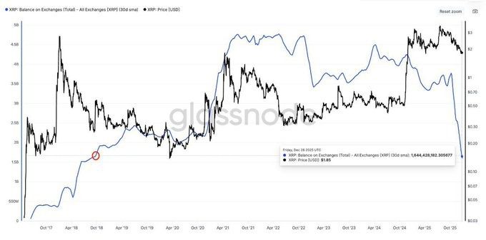 عامل مهم دیگر، کاهش شدید موجودی ریپل در صرافیهاست. طبق دادههای گلسنود، موجودی ریپل در صرافیها طی ۹۰ روز گذشته از حدود ۳.۹۵ میلیارد واحد به نزدیک ۱.۶ میلیارد واحد کاهش یافته و به پایینترین سطح در هشت سال اخیر رسیده است. کاهش موجودی صرافیها معمولاً به معنای کاهش فشار فروش آنی است و در صورت افزایش تقاضا میتواند به تشدید رشد قیمت منجر شود؛ اتفاقی که در حال حاضر در بازار مشاهده میشود.