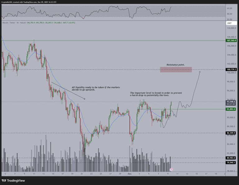 با این حال، برخی نشانهها همچنان صعودی است. به گفته فاندِپوپه،بیتکوین (BTC) سناریوی صعودی خود را حفظ کرده و شکست سطح ۹۲ هزار دلار میتواند ادامه رشد را محتملتر کند.