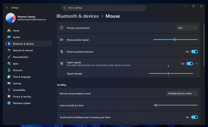 مایکروسافت در نسخه آزمایشی جدید ویندوز ۱۱ با افزودن قابلیت بازخورد لمسی، به کاربران اجازه می‌دهد تا لرزش فیزیکی قابل تنظیم را تجربه کنند.