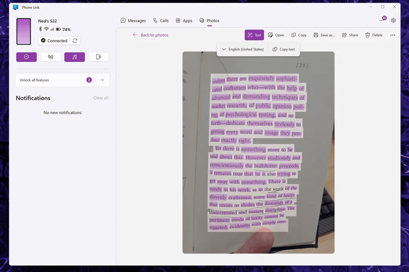 مایکروسافت در حال بهروزرسانی Phone Link برای ویندوز است که به کاربران امکان میدهد متن را از عکسهای همگامسازیشده از تلفنهای اندرویدی خود استخراج کنند.