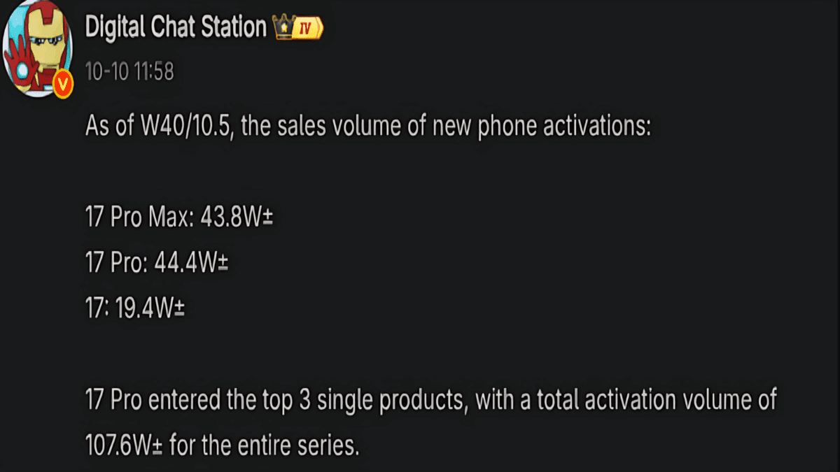 بخش عمده این موفقیت به مدل‌های پرو نسبت داده می‌شود. به گزارش بلاگر مشهور حوزه فناوری، دیجیتال چت استیشن، فروش ترکیبی مدل‌های 17 پرومکس و 17 پرو تاکنون از 800 هزار دستگاه فراتر رفته است.