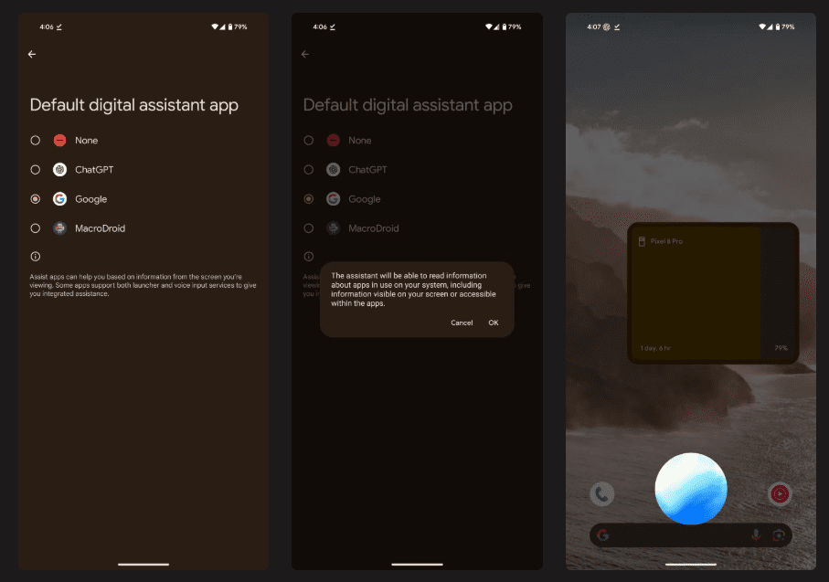 به نقل از اندرویدپلیس، در نسخه بتای جدید ChatGPT، کاربران میتوانند این اپلیکیشن را بهعنوان دستیار پیشفرض اندروید تنظیم کنند. برای این کار پساز نصب نسخه بتا، به مسیر Settings > Apps > Default apps > Digital assistant app مراجعه و ChatGPT را بهجای جمنای انتخاب کنید.